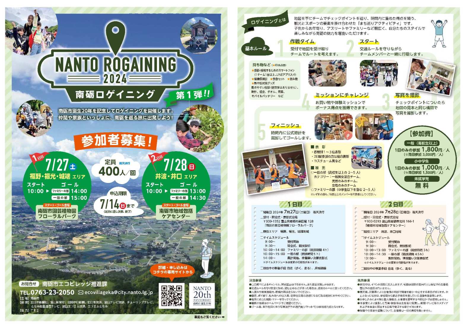 「南砺ロゲイニング」の詳細・申し込みは、下記URLからお願いします!https://nanto20th.jp/rogaining_infomation_01/