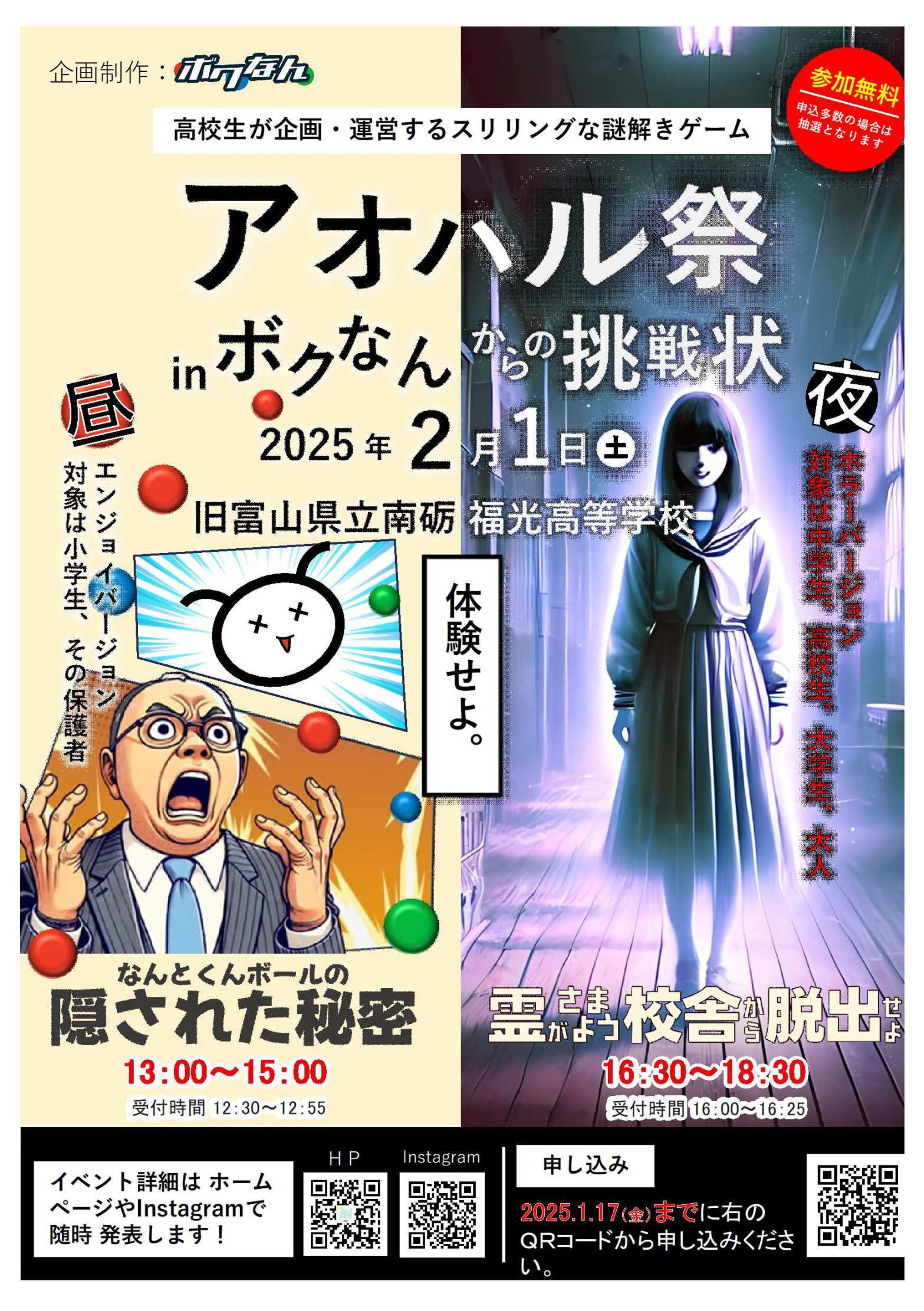 2/1(土)に開催される「アオハル祭inボクなんからの挑戦状」へのたくさんの応募ありがとうございました!