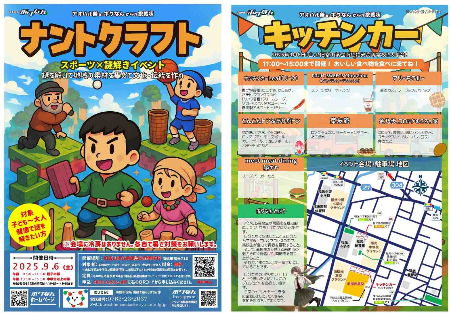 ☆多くのご参加をお待ちしております☆ 日時:令和7年9月6日(土) 第1部(親子の部)9:30~ 第2部(中学生以上)13:30~ 開催場所:旧富山県立南砺福光高等学校 南砺市福光710 対象者:未続きを読む “アオハル祭参加者募集中!!”