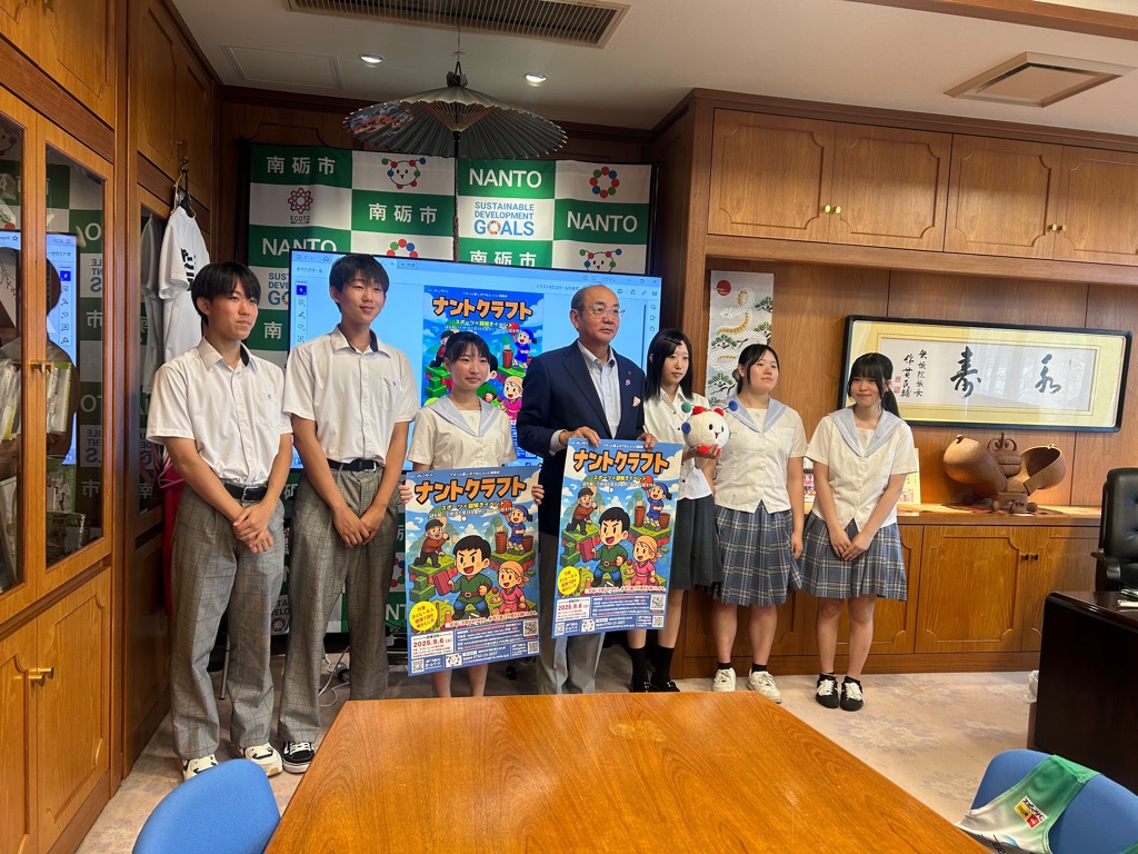 7月30日に高校生メンバー6人で、田中市長に「アオハル祭inボクなんからの挑戦状 ナントクラフト」を報告してきました。市長から、開催にあたり激励の言葉をいただきました。夏休みにかけてこれから準備していきたいと思います!みなさんの応募お待ちしています☆